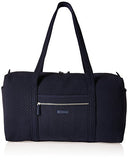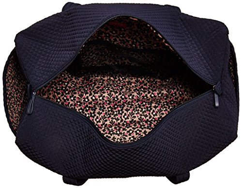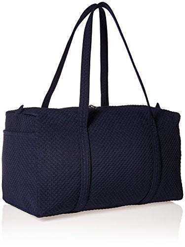Details: Vera Bradley has crafted the spacious, carryon compliant duffel to fit everything you need for your next adventure. The Iconic Large Travel Duffel is the fashionable solution for storing your travel essentials, packing efficiently, and avoiding checked bag fees - measuring 11.5 inches high, 22 inches wide, and 11.5 inches in diameter. The interior of this spacious duffel features one zip pocket and three elastic mesh pockets. Skip the extra carry on and take advantage of these pockets to organize your cosmetics, hair products, jewelry, and other toiletries. The exterior features one zip pocket, a charger pocket, and three slip pockets that are perfect for stowing your wallet, phone, boarding passes, reading material, and snacks. Keep your most important items at your fingertips with pockets designed to keep them easily accessible and soundly fastened for your flight.