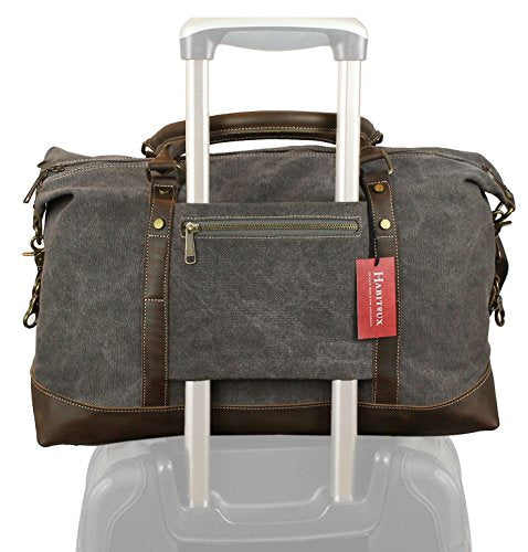 - THIS CLASSIC YET RELAXED STYLE DUFFEL BAG is the ideal getaway carry-on travel bag with it's thoughtful backslip pocketed exterior panel which securely slides over the handle of your wheeled luggage, this is a unique feature rarely seen in other duffle bags! Convenient pocket to quickly stow and access your passport, boarding pass keys and phone while traveling.
