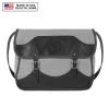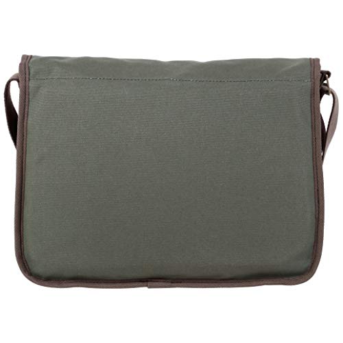 Details: Thick premium leather bottom and flap trim Adjustable cotton web shoulder strap with leather pad. Interior full-length divider with pen and calculator pockets. Tough 15 ounce cotton canvas construction. Guaranteed for life. Made in the USA.