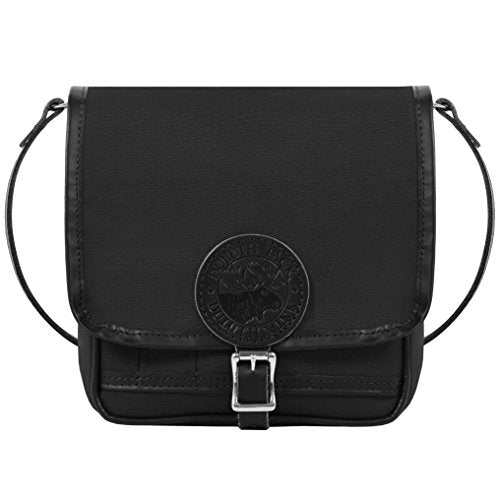 - Heavy-duty canvas construction, with leather trim and adjustable leather shoulder strap