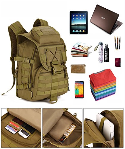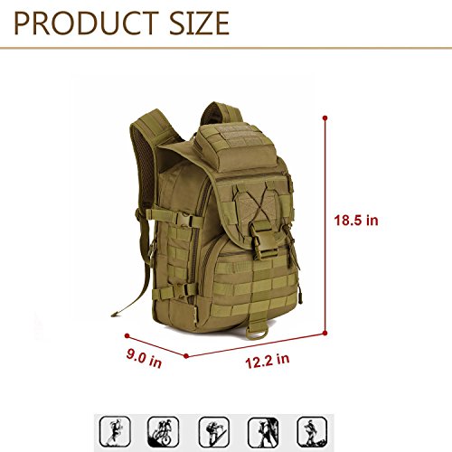 Details: Department:Unisex Structure 1.Exterior: Three zipped front pockets,Card Buckle Closure Package Cover,Cover with Two zipped pockets 2.Interior: Four open pockets,One Magic pocket 3.Outer Material: High Strength Abrasion Nylon Inner Material: Waterproof Silky Cotton 4.Back: Thicken Breathablec Sponge 5.Hardware: Metal+Lengthen the Rope Pull Head 6.Adjustable Long Shoulder Strap: Military Nylon Fabrics Unremovable Shoulder Strap 7.Chest Sliding Control System Measurements 1.Dimensions: 12.2"W x 18.5"H x 9.1"D Front Pockets: 8.3"H x 12.2"W 2.Shoulder Strap Drop: 13.8"-33.1" Shoulder Strap Width: 3" 3.Pocket size: (Zipped front pocket): 13.6"H x 7.8"W 4.Weight: 2.7lb Features 1.Suitable for fitness, outdoor travel,hiking, and other outdoor activities. 2.Chest sliding adjustment system can quickly adjust to their comfortable state,so that more comfortable Backpack. 3.MOLLE external expansion system designed to be used in combination with other equipment,you can load pockets£¬water bottle bag,accessory kits and other. 4.The bag works well with a variety of different outfits and casual styles. Notes 1.Care: Hand wash with cold water. 2.Tolerance: 0.39"-0.79". 3.Packing List: Tactical bag x 1.