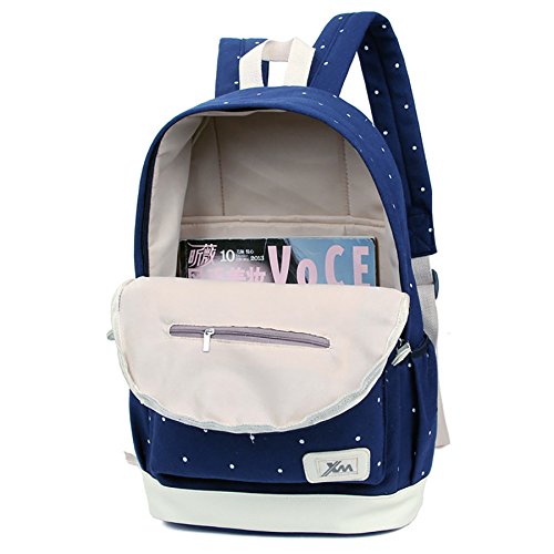 • Canvas,Imported,Zipper closure,The backpack set includes 1 bookbag, 1 shoulder bag and 1 makeup bag.