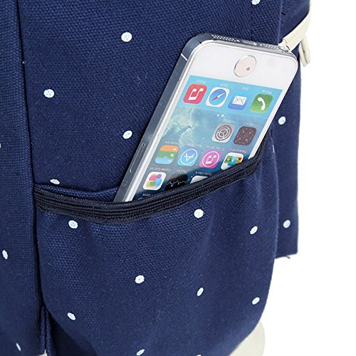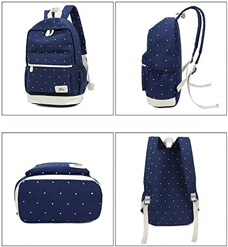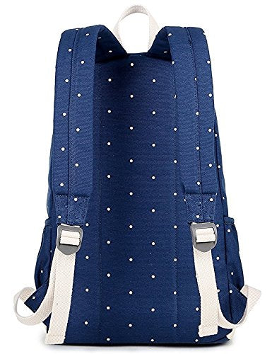 • The cute school bag features soft yet durable canvas fabric, vintage geometric/polka dots pattern, padded shoulder straps for carrying comfort and padded laptop sleeve.