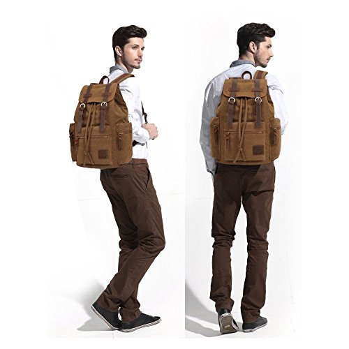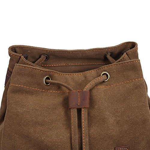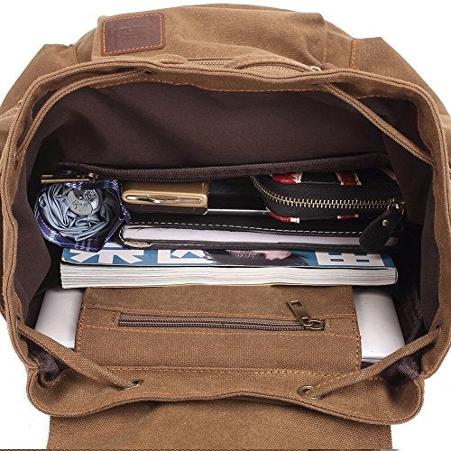 KAUKKO Retro Canvas Schoolbag Casual Satchel Backpack Multi-Functional Rucksack (Khaki)
