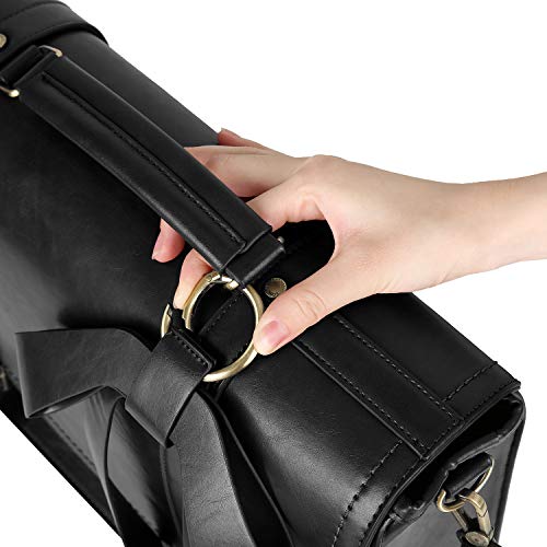 - This messenger bag is made of soft PU leather with durable top handle and an adjustable and detachable shoulder strap.