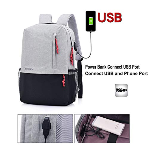 Details: Canvas Laptop Backpack, Waterproof School Backpack With USB Charging Port For Men Women, Lightweight Anti-theft Travel Daypack College Student Rucksack Fits up to 15.6 inch Computer