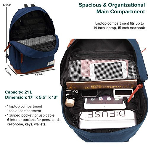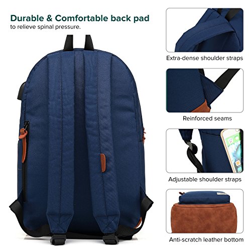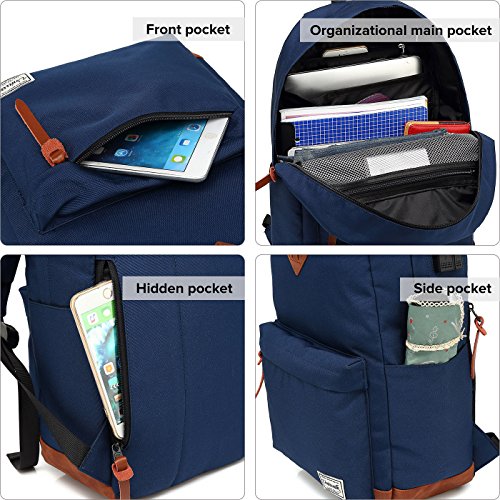 - SAFE & STURDY -- Anti theft daypack includes a theft proof hidden pocket on the back, offering a private space to protect wallet and other items. Premium SBS brand zippers featuring with leather puller are smooth, durable and easy to use. The bottom of this college backpack is fully covered with sturdy anti-scratch faux leather.