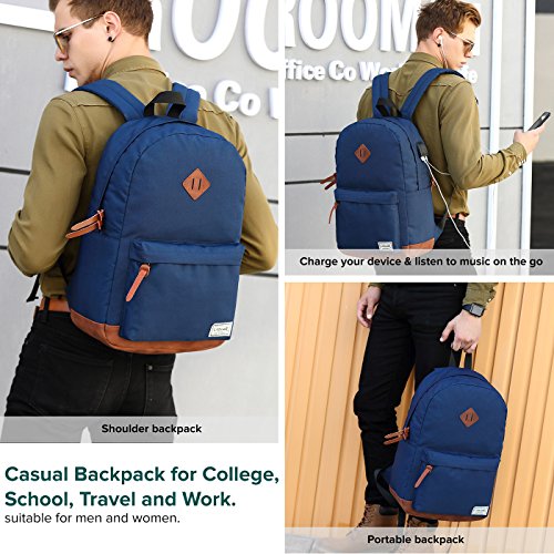 - EXTERNAL USB DESIGN -- Travel backpack built in an external USB port with removable usb charging cable offers convenient charging experience when you are walking by simply connecting your portable charger with electronic device. Not only that, this backpack has a headphone jack, enabling you to enjoy music in a handsfree manner.