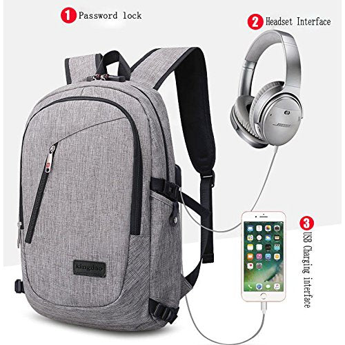 Details: Dimensions:20 x 12.2 x 5.7 inch with dedicated laptop compartment holds laptops less than 15.9 inch3 main pockets and 9 inner small pockets and 2 sealed side pockets provides a separated space for your laptop iPhone iPad pen keys wallet books clothes bottle and more. External usb with built-in charging cable includes a theft proof combination lock and durable metal zippers made from durable nylon fabric with two ""s"" curve padded shoulder straps offers light-weight carrying and of force reinforcement. External usb interface: You can easily and conveniently charge your phone tablet and other devices without opening up the backpack. Multiple pockets keep your items well organized. The inner of backpack designs a small pocket convenient to place your power bank. Casual college work daypacks perfect for business traveling weekend getaways school shopping and other outdoor activities easy and comfortable to carry throughout all day.