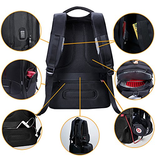 Details: About KALIDI 17.3 inch Waterproof and shockproof laptop backpack with External USB Charging Port The backpack is a multi-functional backpack for the daily commute or business travel,or used as a school bag.A well padded laptop compartment for up to 17.3 inch laptop.The backpack provides fashion style and functional organization for everyday use in comfort.