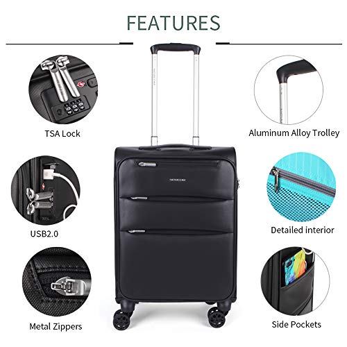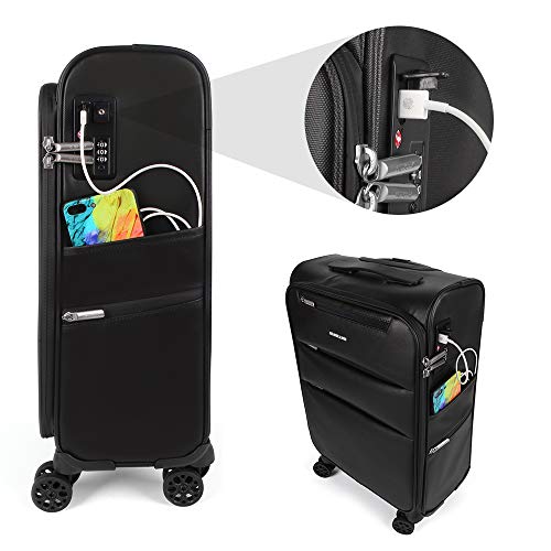 Details: NEWCOM Luggage delivers great durability together with a fashionable light business design. Our aim is "Easy to Travel". It is made from polyester fibers to provide your belongs with maximized protection. The use of 360 degree spinner wheels and telescopic push button handle system enables high stability over a variety of surfaces especially crowded airport. Multiple Front Pockets for Easy Access. This sharp looking piece with external USB charging port outside will keep your business trip in style.