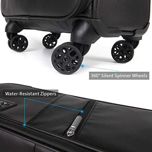 - 【TSA Lock & Four Double-Wheels】Side-mounted TSA approved lock act to deter theft, and only allow TSA agents at airport to inspect your bags without breaking the locks. Four omni-directional 360-degree dual spinner double wheels go smoothly and silent. The adjustable 3-stop 100% pure aluminum telescoping handle is sturdier than most of the telescoping handle on the market.
