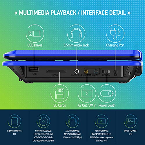 - UPDATED LOADING - We are proud to bring you this upgraded DVD player with improved components that allows you to play almost any DVD format on the market, with faster speed and more stability. With the built-in high-capacity 2,500 mAh rechargeable lithium battery, you can enjoy watching your favorite DVDs for up to 4 hours. Get one now and try it!