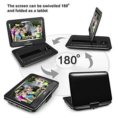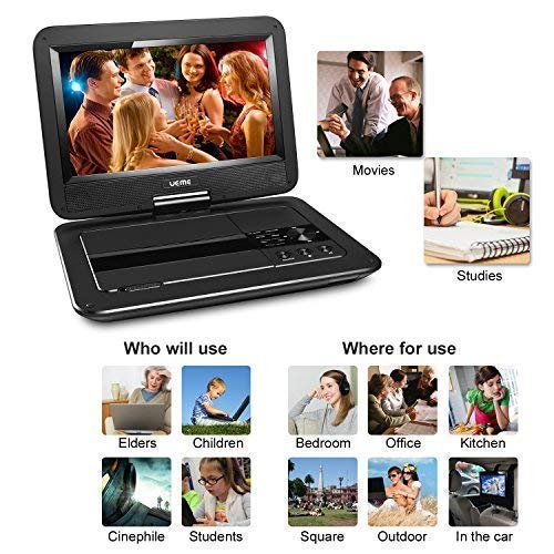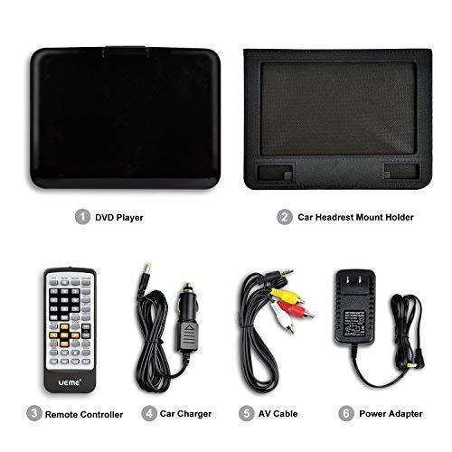 - COMES WITH A CAR HEADREST MOUNT HOLDER- The car headrest mount holder is a canvas case with 2 straps. It can be buckled to the car headrest easily; The screen of the DVD player can be rotated and flipped down. Place the folded DVD player in the case so that you can enjoy movies on-the-go. (Warm tips: To change DISC, you has to take out the DVD player from the case)