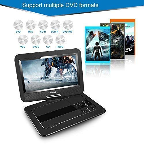 - PORTABLE DVD PLAYER- 10.1 inches TFT LCD screen with HD 1024 x 600 resolution. Built-in high capacity rechargeable lithium battery. Built-in 2 x 1.5 W speakers to provide stereo sound. Anti-shock and light weight design make it easy to carry. Comes with a wall charger and a car charger. Suitable for home and travel use. It's a nice holiday gift