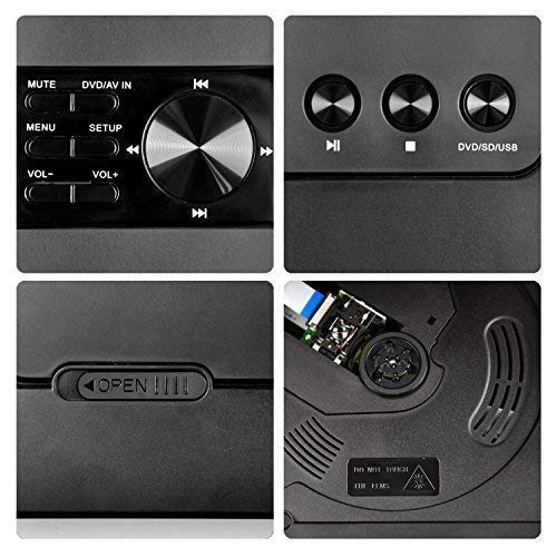 - PLAYING FULL REGION DVD's and CD's- Compatible with DISC types include: DVD DVD-R DVD-RW CD CD-R HDCD Music-CD Audiobook-CD Mp3-CD Picture-CD VCD EVD SVCD; You can also play the supported multimedia files through the USB port and SD card slot (Max support 32G); Compatible audio files include MP3 WMA; Compatible video files include VOB, AVI MP4 which is encoded with DIVX, XVID or MPEG4 ( It doesn't support H.264 codec. The video's screen size should be 720x576 or less in either height or width)