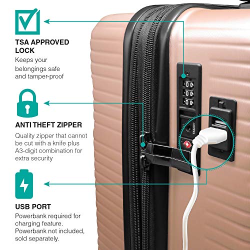 Keep your belongings organized with a well tailored divider and tie-down straps, that's easy to clip and un-clip. Your belongings will also stay safe with this lightweight impact-resistant shell casing. Includes a built in TSA approved dial lock and dual USB ports for charging on the go (you must need a power bank supply for the USB ports to work). Lowered risk of theft with durable, anti-theft zippers. Includes a lower carry handle for maximum grip on all angles and includes a 2 year warranty.