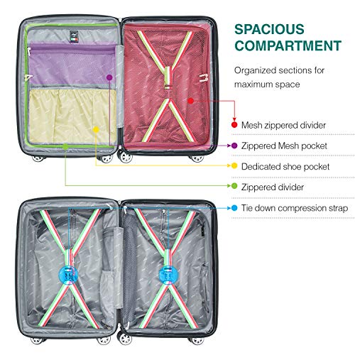 - DETAILED INTERIOR - With multiple pockets and zippers. Keep your items organized and even separated with the convenience of two dividers and two packing straps. Strong pocket mesh divider makes your things stay protected, easily view-able and accessible / INTERIOR DETALLADO - con múltiples bolsillos y cremalleras. Mantenga sus artículos organizados e incluso separados con la conveniencia de dos divisores y dos correas de empaque. Fuerte separador de malla del bolsillo fácilmente visibles