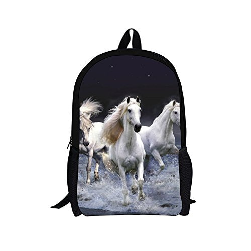 Bigcardesigns Backpack School Book Bag Teenagers White Horse