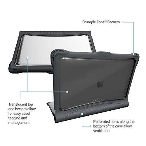 - FEATURES: Perforated holes along the bottom of the case allow ventilation. When opened, case elevates the keyboard for a more ergonomic typing angle. Transparent back allows barcode scanning for easy asset management. Charge cart compatible.