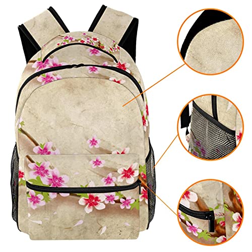 LORVIES Japanese Style Peach Blossom Flower Background Lightweight School Classic Backpack Travel Rucksack for Girls Women Kids Teens