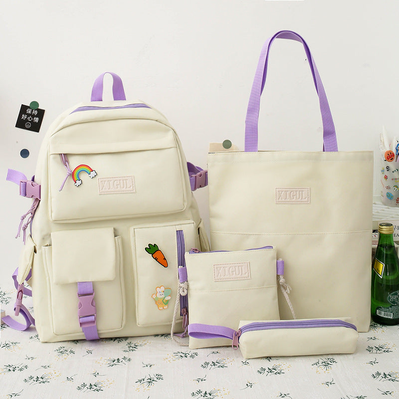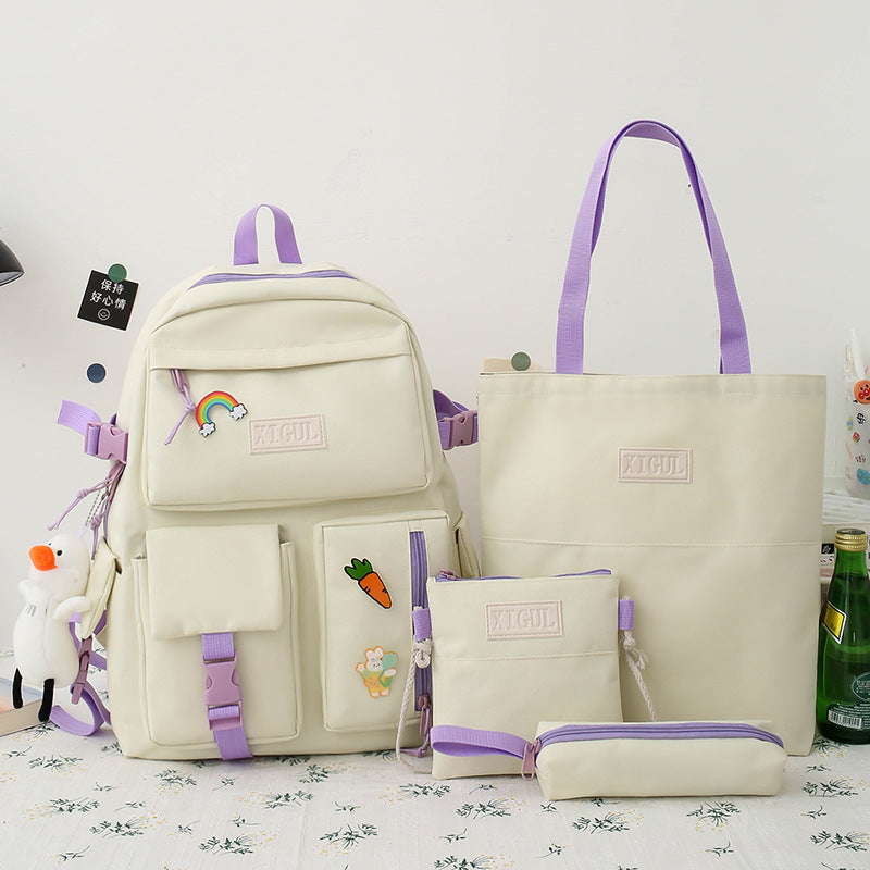 color: Pink kit + badge, white bag + badge, blue bag + badge, black set + badge, pink suit + badge + duck pendant, white bag + badge + duck pendant, blue bag + badge + duck pendant, black package + badge + Duck pendant