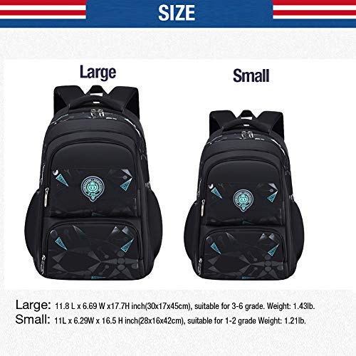 Details: Great rucksack back pack for school for kids age 5-12 years old Specification: Department: Boys Material: 100% Nylon Dimension: Large-11.8 L x 6.69W x 17.7 H inch(30x17x45cm), suitable for 7-12 years old Small-11 L x 6.29 W x 16.5 H inch(28x16x42cm), suitable for 5-6 years old Color: Blue, Navy, Black Features: √Stylish √Good for kids indoor and outdoor activities. √Lots of compartments, very practical. √Birthday gift | Christmas gift | Holiday gift √Muiti-purpose: you can use it as a travel bag, swimming bag, hiking backpack etc. Friendly Tips: Please allow 0.39-0.8cm slight measurement deviation for the data. The actual color may vary slightly from the online image due to monitor color settings. Contact us if you have any questions, we are willing to solve your issue. Package Included: 1 x Primary School Bag for Boys