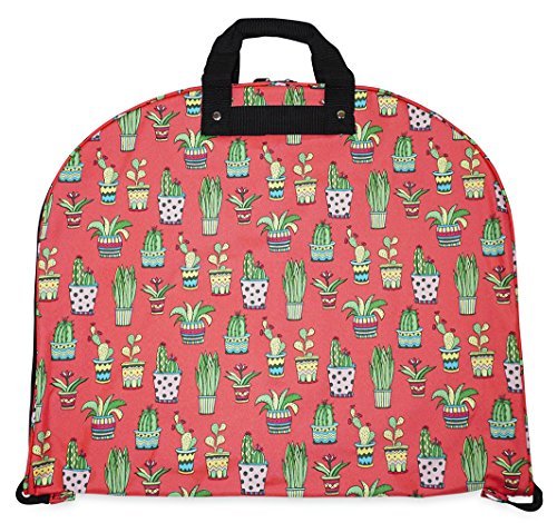 Details: Take your dress clothes with you confidently on vacation with this stylish garment bag! This piece of lightweight luggage is great for jet setters and can be used for a quick, close by staycation or for a weekend excursion to your favorite retreat. Made out of durable 600 Denier Polyester fabric in a chic print. This garment bag folds in half and can be hung by its metal hook. The interior of this bag features multiple zipper pockets to hold shoes and accessories. Perfect for transporting cheer uniforms or theatre costumes to and from while keeping them clean and wrinkle free! Organize your closet and keep delicate, high quality items neat and pristine.