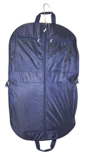Details: Take your dress clothes with you confidently on vacation with this stylish garment bag! This piece of lightweight luggage is great for jet setters and can be used for a quick, close by staycation or for a weekend excursion to your favorite retreat. Made out of durable 600 Denier Polyester fabric in a chic print. This garment bag folds in half and can be hung by its metal hook. The interior of this bag features multiple zipper pockets to hold shoes and accessories. Perfect for transporting cheer uniforms or theatre costumes to and from while keeping them clean and wrinkle free! Organize your closet and keep delicate, high quality items neat and pristine.