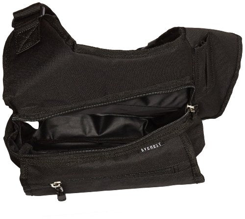 - -Mesh storage and zippered pocket beneath the protective front flap
