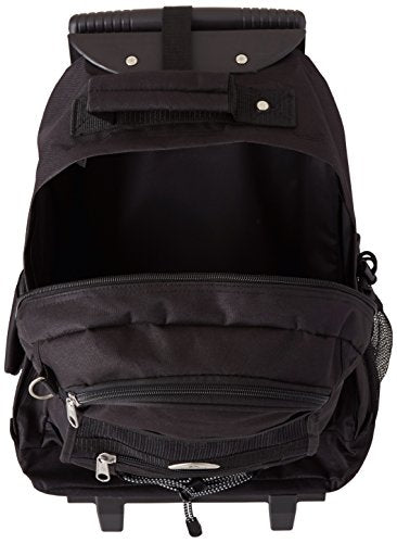 Details: The ultimate backpack on wheels. The wide opening main compartment extends all the way down to the bottom fitting anything from textbooks to luggage.