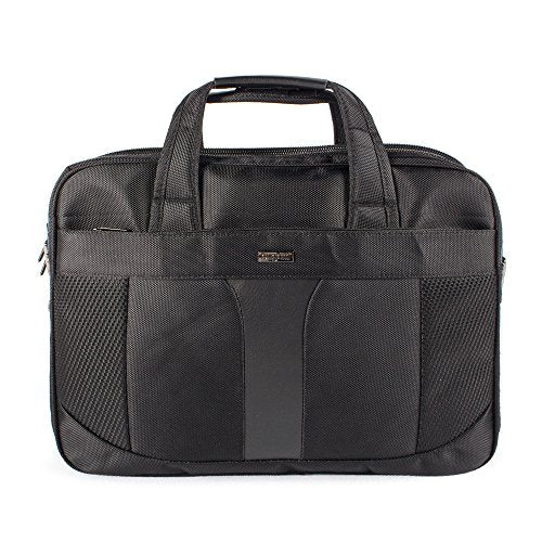 Details: Travel with a briefcase that blends dapper and dependable, with hidden back panel zippered pockets and classic gunmetal hardware. Our executive briefcase has a padded and secured 14" laptop compartment with an expandable two gusset design. The front panel is equipped with an accessory pocket along with a trolley-pass through to conveniently attach on any carry on.