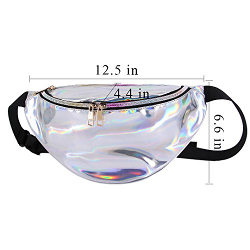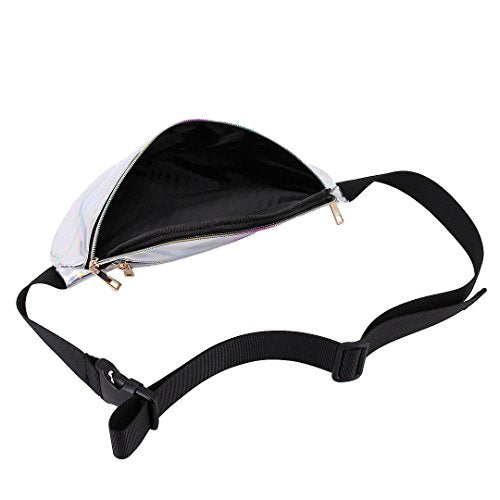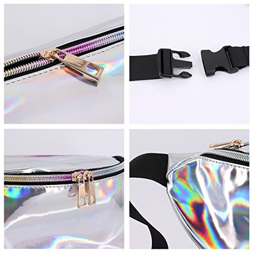 - FASHION DESIGN: hologram pu leather fanny packs feature 2 pockets with zipper closure - 1 main front compartment and 1 top compartment for keeping your ID cards and money safe from theft