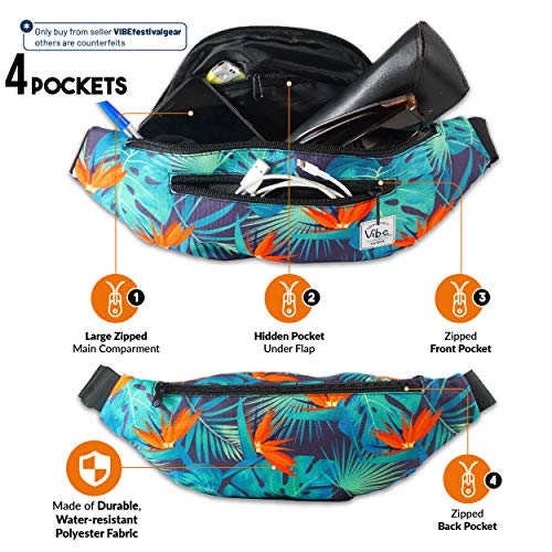 Vibe Festival Gear Fanny Pack for Men Women - Many Prints - Black Holographic Silver Gold Cute Waist Bag for Festival Rave Hiking Running Cycling