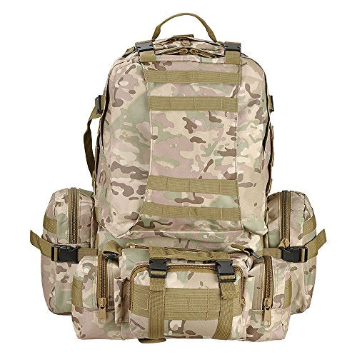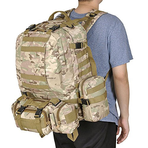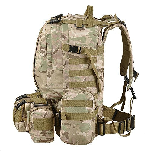 - This camping bag is ideal and convenient for your outdoor activities.Bigger size with more storage space. With 3 detachable molle pouches attached on front and two sides.