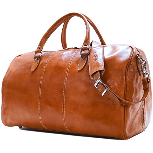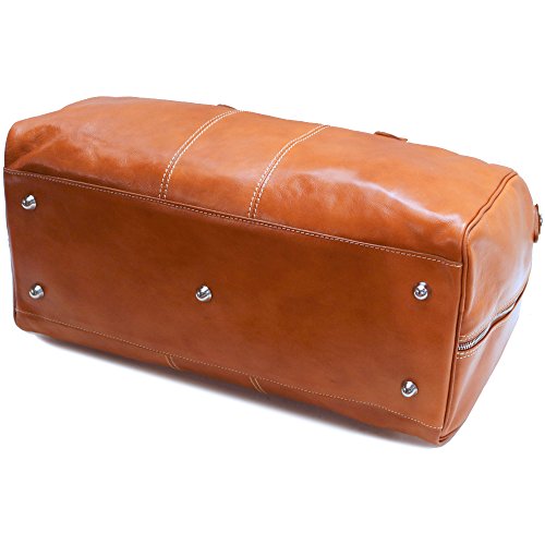 Details: Floto Venezia Italian leather duffel bag timeless and sporty this handsome leather duffle bag meets carry on requirements fitting nicely into an airlines overhead compartment. Made using old world methods with special attention paid to detail this superior quality leather travel bag will get you where you're going in style for years to come Toss it on a jet, take it on a cruise or pack it for a long weekend in Nantucket - whatever you choose arrive in style with this classic Italian leather bag!