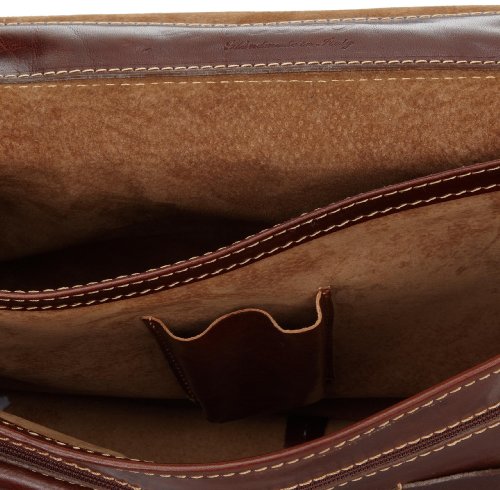 Details: The roma messenger bag comes in brown calf-skin, black calf-skin, and linen canvas with brown leather trim. the interior is big enough to hold a laptop, files, magazines, and a newspaper. it has two separate compartments lined with matching suede leather. the front flap buckles over an outside zip pocket and a cell phone and pen holder. the back has an additional large zip pocket for holding maps and documents. roma messenger is handmade in tuscany using italian polished calf-skin leather and old world craft methods. the result is a timeless and simple briefcase with unquestionable quality and durability.