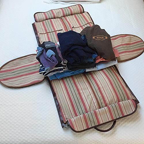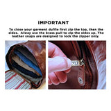 Details: This Venezia Garment Duffle Bag is made with Tempesti leather. Tempesti tannery in Tuscany, Italy is famous for making the best vegetable tanned leather in the world. The full grain leather is thick, supple, and even in color. One characteristic of Tempesti leather is that it very soft to the touch and will scratch easily, but the marks can be rubbed out with your finger and blend in over time - please take note of this. Venezia Garment Duffle Bag is the perfect travel bag for a business trip or wedding weekend. The sides of this bag unzip to pack a suit + your clothing - it zips back up into a classic duffle bag style. The inside of the Venezia Garment Duffle Bag has 3 multi-function zip pockets for tech and accessory storage - one 8″ x 14″ pocket and two 7″ x 7″ pockets. The lining for this leather weekend bag is 8 oz cotton duck canvas that is made in South Carolina and very durable. Made in Italy.