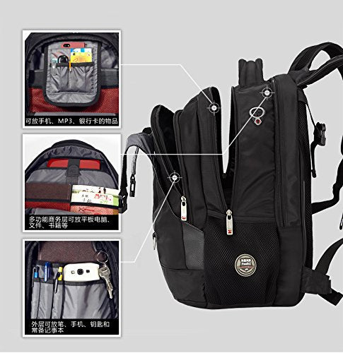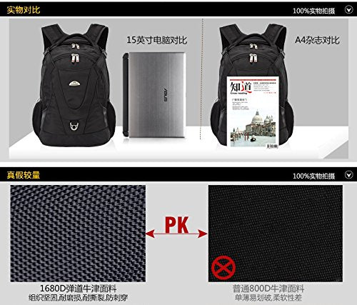 Details: backpack made of 1680D good nylon, with breathable & decompression back pad, comfortable shoulder strap. With laptop case, ipad holder, key holders, books holders, glass holders.