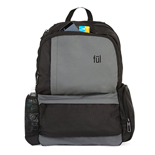 Details: For the student on the go, the ful Wendell laptop backpack is essential. It offers a rear compartment that is padded to keep your laptop safe and secure. The full secondary compartment is large enough for notebooks and books, and includes a mesh zipper pouch. The front zipped pocket is tricot lined and has multiple pouches for cables, pens, and more. The school backpack also features a side pocket for water and a padded back panel with an air flow channel. 1 year warranty