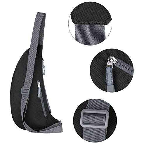 - ★★ WATER RESISTANT+ AJUSTABLE STRAP 26 to 47 inches: ★★ 603 nylon fabric, tear resistant and brethable,this sling bag has great flexibility.You can use it both as chest pack and shoulder bag. Also it can be worn in the front,back or cross body .Good construction and sturdy bag. Shoulder strap is adjustable,FULL EXTENDED to 47 inches,long enough to meet different requirements for both men and women.