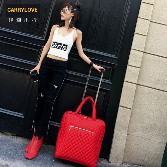 Carrylove Classic Luggage Series 18 Inch Size Lattice Pu Rolling Luggage Spinner Brand Travel