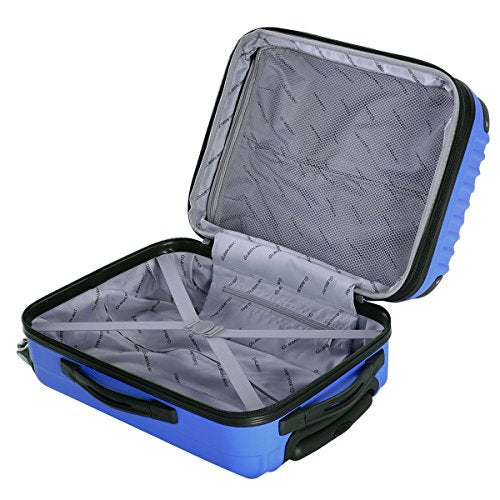 Details: This 20" trolley suitcase is constructed from lightweight ABS material and features an embossed scratch-resistance shell, a heavy duty handle and 4-wheel spinner for effortless moving. Inside the suitcase, there is elastic tie straps to minimize shifting your contents and a zipper divider to create two separate interior compartments.