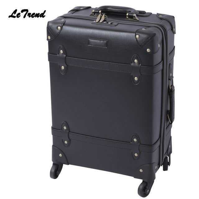 Letrend Vintage Suitcase Wheels Rolling Luggage Spinner 20 Inch Student Zipper Carry On Travel
