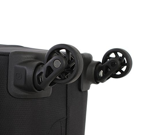 Details: Lightweight expandable 20 inch swissgear carry-on spinner in black with grey piping