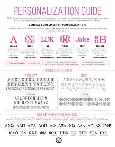 - Can purchased blank or monogramed for a special touch. Please be sure to look at the Embroidery Fonts & Personalization Guide in the images to determine which design is right for you!