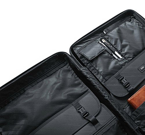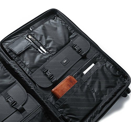 - Includes a fully-lined interior with multiple zip, mesh, and pleated pockets on the inside divider panels for exceptional organization. The interior is divided into two compartments with flat panels in place to hold clothes securely and discreetly.