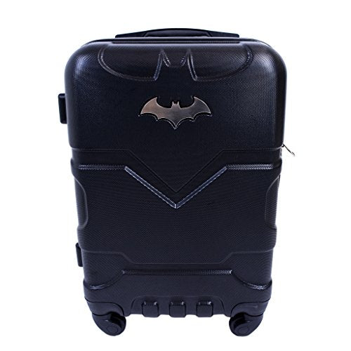 Details: Travel in a style that would make Bruce Wayne himself proud with this official Batman carry-on luggage. It is embellished with embossed Batman logos on the front and embossed Batman text on the back. The luggage is also made with a durable ABS plastic outer shell that will stand up to rough and tumble travel wherever you go. It is mobile on four spinners that spin 360 degrees for maximum transportation ease along with a aluminum telescopic pull handle that tucks away when not in use. It also includes an Interior zipper compartment that lets you organize small items. Other features include retractable top and side panel handles and durable polyester fabric on the inside. Easy to spot clean