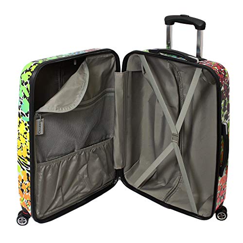 Details: Offering a fresh perspective for travel and combining the best of the hardside and spinner worlds, this 28-inch Luggage manages to get you there easier and with greater peace of mind. It is built lightweight and thoughtfully with secured prepared-to-go interiors.Wowing lovers of artistic creations this sleek luggage set is in a category of its own360 degree spinner wheels for maximum mobility and maneuveringLightweight design ideal for the traveler on the go Interior features dual compartment to maximize packingPush-button self-locking internally stored retractable handle systemErgonomic and comfortable padded top and side grip handlesEight Wheel Spinner System For Optimum MobilitySilver pewter hardwareFully lined interiorMaterials: Polycarbonate/ABSWheel type: Four - 360 Spinner wheelsDimensions: 28-inch upright: 30 in. high x 19 in. wide x 12 in. deep - 10.2 lb. Type: Fashion, HardsidedMaterial: ABS, PolycarbonatePattern: LeopardFeature: Multi-Compartment, Spinner, Telescoping HandleExact Color: Multi-colorColor: Multi