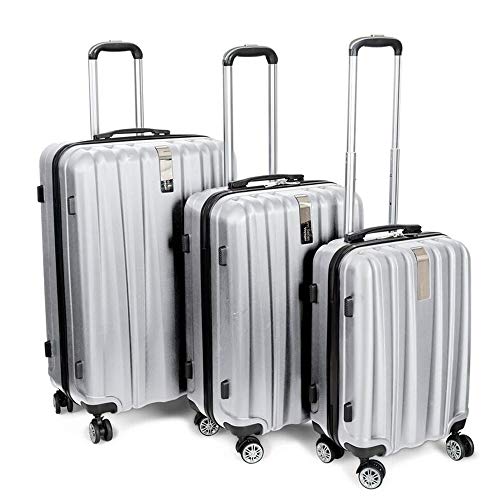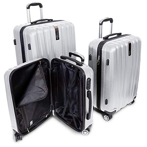 Deco Gear Travel Elite Series - 3 Piece Hardside Spinner Luggage Set (Silver)(20",24",28")
